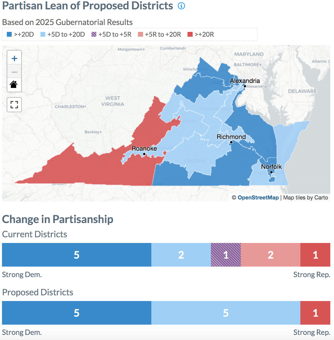 According to VPAP, the new legislative districts would be weighted to change the congressional makeup to 10 democratic seats and 1 republican seat. The proposed lines clearly do NOT reflect compact community guidelines.